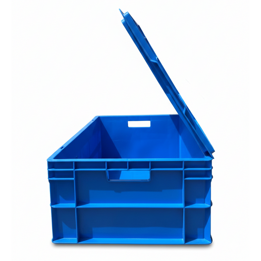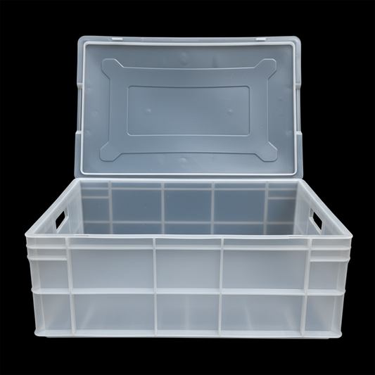 Plastic Heavy Duty Storage Crate with/without attached lid 600x400x220mm Stackable Food Grade Crate - Clear to check content