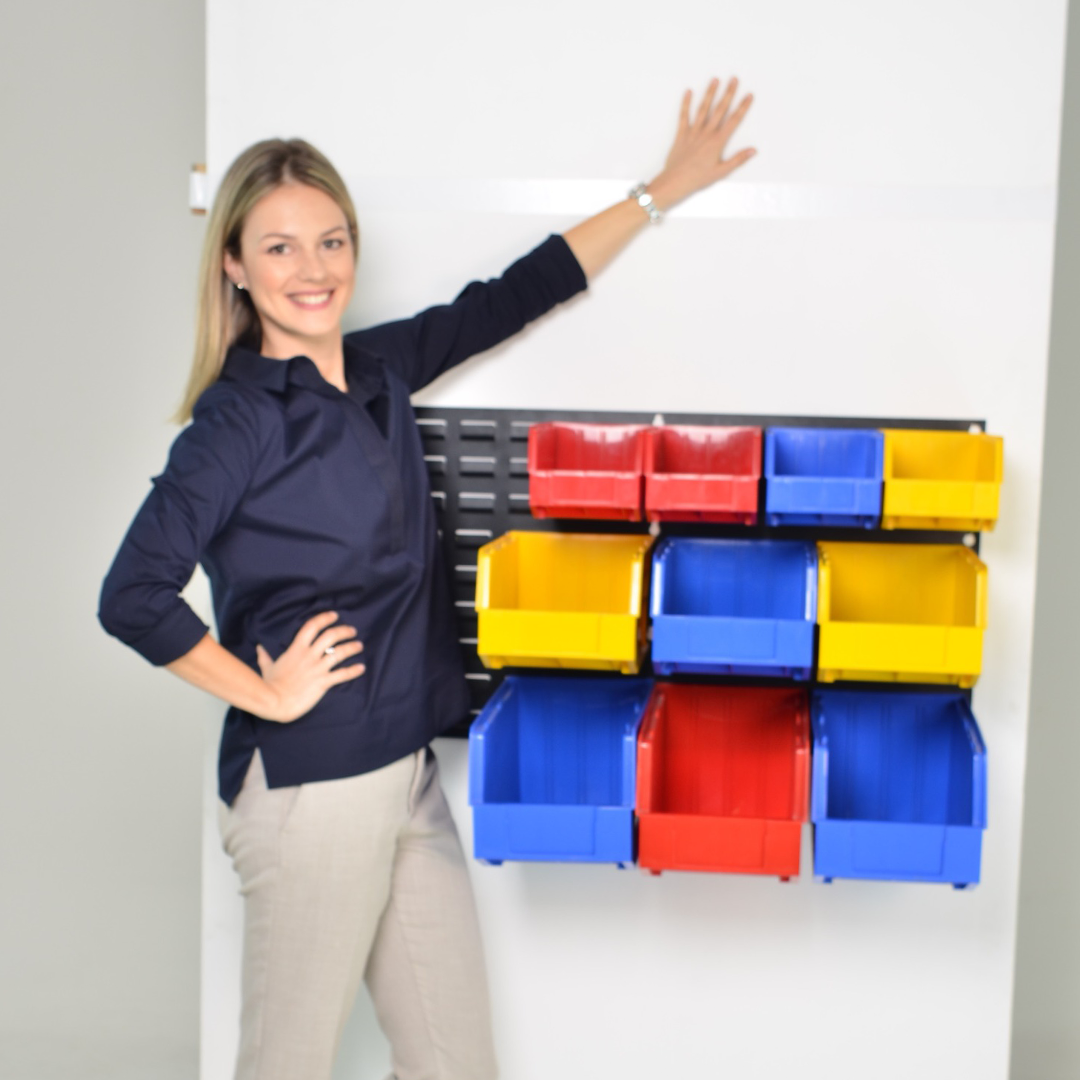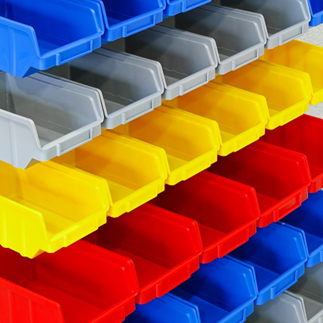 - Includes 14 heavy-duty plastic bins in three sizes: 2.85L, 6.7L, and 8.7L